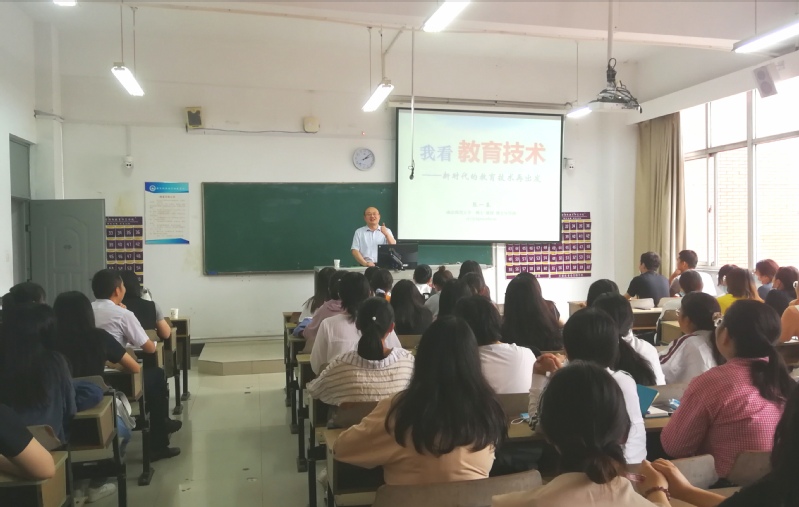 张一春教授以“我看教育技术——新时代的教育技术再出发”为主题,结合教育技术学专业员工面临的现实困惑,从“教育技术是什么?”、“教育技术能做什么?”、“教育技术做了什么?”等角度与大家探讨了教育技术学专业的现状与面临的挑战。张教授用幽默生动的语言、通俗易懂的案例帮助员工深入理解了教育技术专业的内涵、定位和应用,促进员工们更好地认识和思考教育技术专业的发展,整场报告内容生动而深刻。随后,张教授与现场师生进行了互动交流,对同学们提出的有关考研、就业、专业竞赛等问题进行了耐心详细的解答。