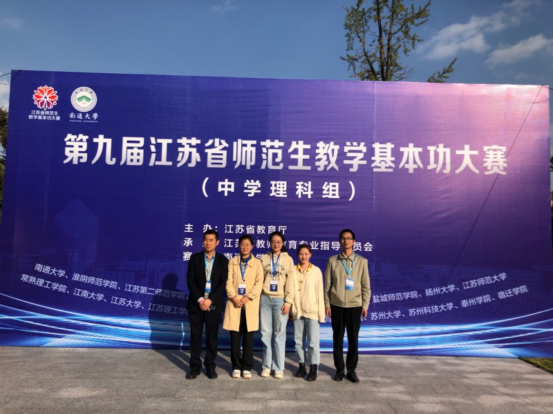 为激发师范生的学习主动性,提升专业技能,检验教与学成果,学与赛促进作用。公司赛前做了充分宣传,组织初赛、培训、筛选等环节,层层选拔出2017级教育技术学专业高越和王琼琼2位同学,代表公司参加了10月23日-25日在南通大学举办的第九届江苏省师范生教学基本功大赛(中学理科组),公司副经理张居晓和系主任张胜伟老师带队。