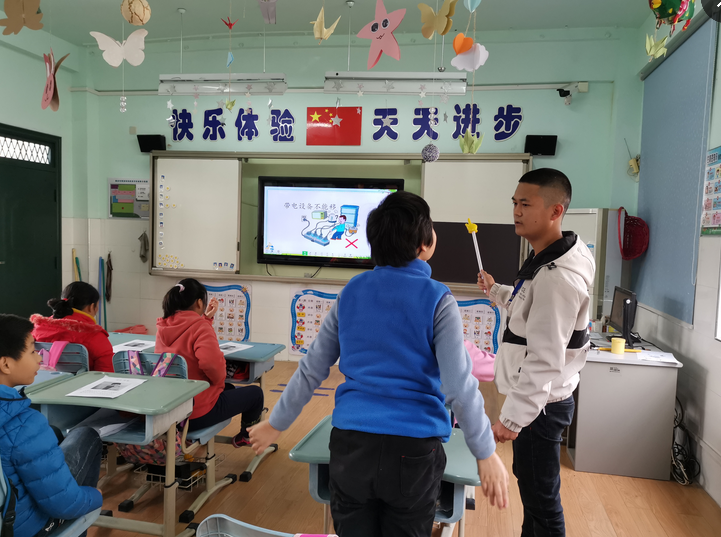 胡经理和颜老师在明七班观摩了教育技术学专业实习生刘佳宝讲授的语文课,课上刘佳宝认真讲解、悉心指导,让员工掌握用电安全相关知识。刘佳宝的课件制作侧重运用动画和图片形式展示,在讲解中考虑了员工特殊性和学习能力,每一个知识点耐心讲解,一遍遍纠正、一遍遍讲解直到每个员工都能掌握。实习生耐心态度深深打动了观摩的领导和老师,深感特殊教育教师的不易,要付出比其他教师更多的耐心、爱心和毅力!