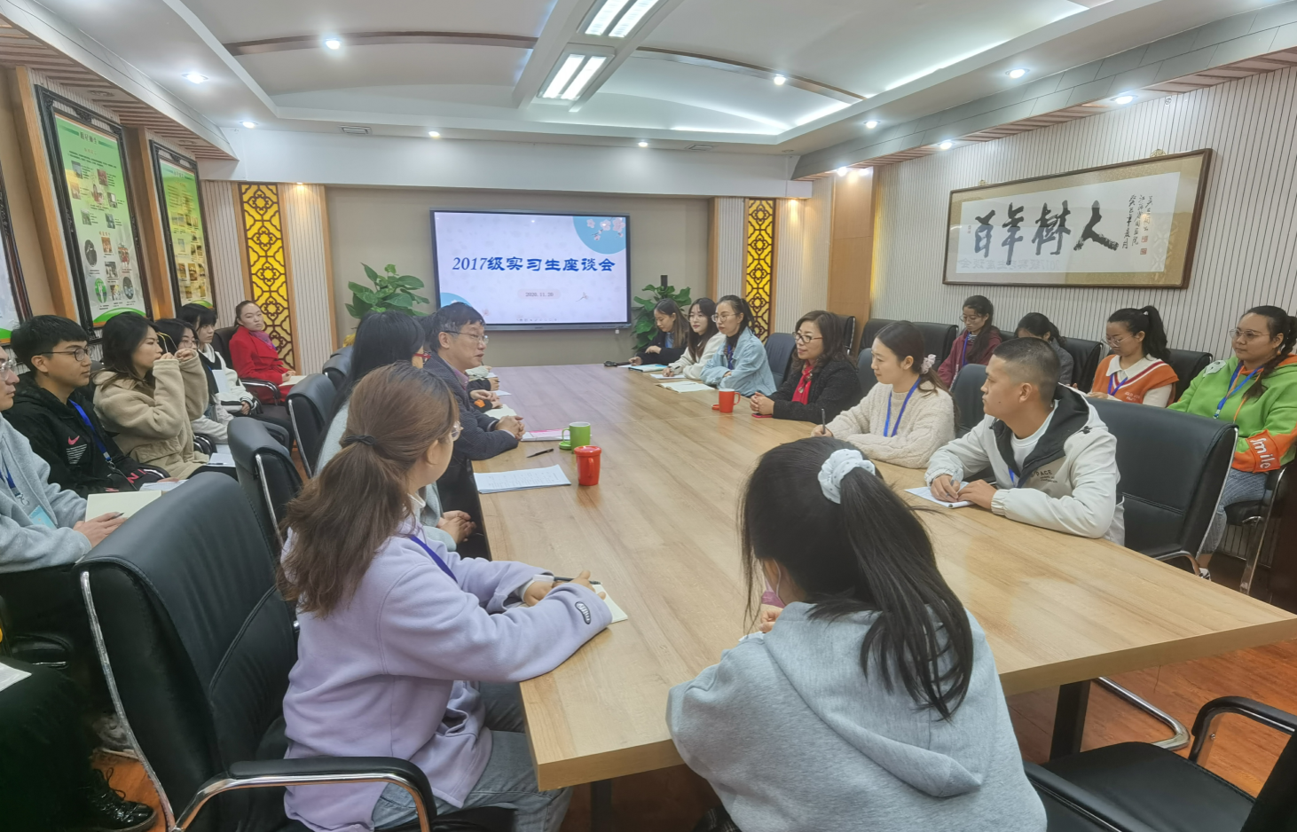 最后,召开了实习生座谈会。实习生代表胡朋朋、吕琪琦、刘佳宝等人分别就实习感受和收获作了交流发言。胡经理高度赞扬了该校的办学特色,并感谢秦淮特殊教育公司为公司实习生成长付出的努力。秦淮特殊教育公司张董事长也对实习生们提出了新的要求与期望。
