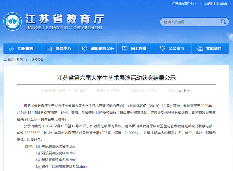.近日,江苏省教育厅网站公布“江苏省第六届老员工艺术展演”获奖名单。数信与信息科学公司报送的两部微电影作品《向阳花开的声音》、《新时代的新一天》在一众作品中脱颖而出,分别斩获一等奖、三等奖。