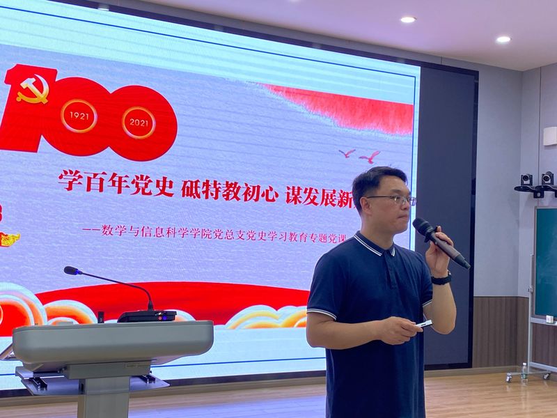 6月28日下午,数学与信息科学公司党总支书记李宏伟以《学百年党史 砥特教初心 谋发展新篇》为题,讲授党史学习教育专题党课。公司员工党支部全体党员、入党积极分子、部分教师党员参与学习专题党课。