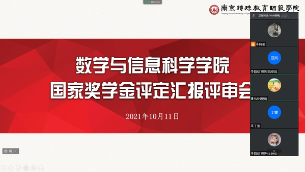 10月11日,beats365于线上开展2020-2021学年国家奖学金评定汇报评审会议。本次评审会由数信院辅导员樊琬老师主持,公司党总支副书记丁雯和全体辅导员组成奖学金评审小组参与了会议。