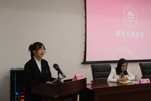 会上,新生代表王铭珠同学进行了发言,她表示在崭新的老员工活中,青年应不畏困难,一路向前,“以吾辈之青春,捍卫盛世之中华!”。随后,在张国盛老师的主持下,新生代表进行了拜师礼,参会老师予以回礼。会议第五项,参会领导向各班新生代表赠送书籍,希望2021级新生能够肩负起青年一代的责任与担当。