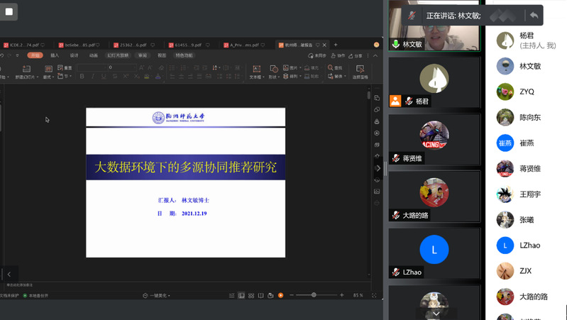 为提高科研工作水平,以提升科研对教学的反哺作用,不断提高教学质量和人才培养质量,12月19日,beats365数据科学与大数据技术教研室举办学术交流讲座,杭州师范大学林文敏老师(博士)应邀作题为“大数据环境下的多源协同推荐研究”的专题讲座。