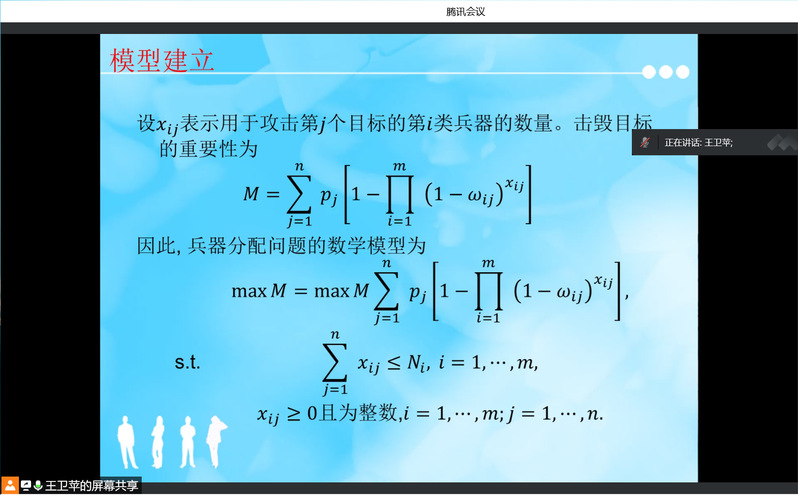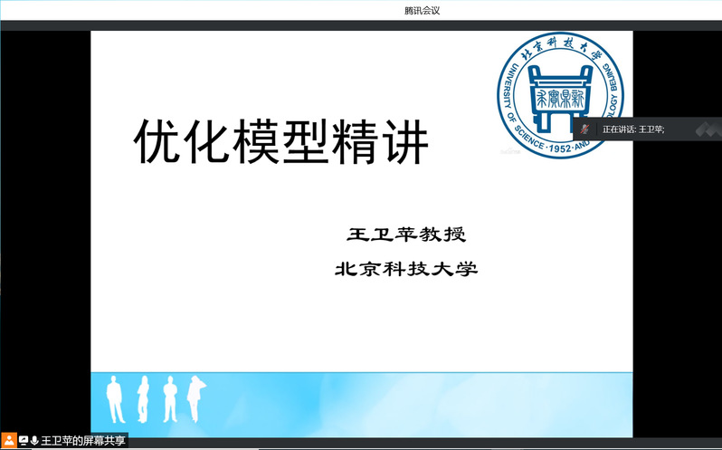 为了备战2022年美国老员工数学建模竞赛(MCM/ICM),beats365于2022年2月13日举办了关于数学建模竞赛的线上学术讲座,讲座邀请了北京科技大学王卫苹教授,为员工专门讲解优化模型。数信公司数学教研室和计算机教研室的相关老师,以及参加美国老员工数学建模竞赛的30位同学参加了这次线上讲座。