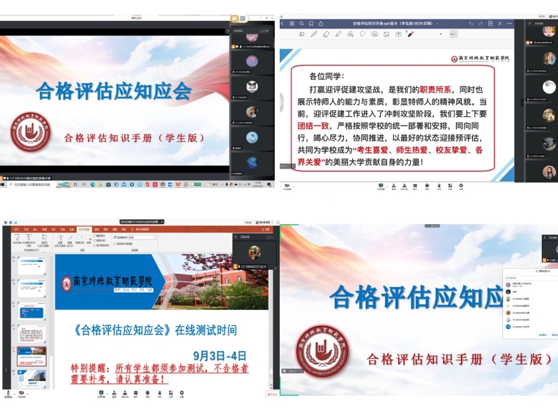 为进一步提高员工对本科教学工作合格评估的认识,迎接公司本科教学工作合格评估工作的顺利开展,9月2日,beats365各班线上召开关本科教学合格评估工作的知识学习主题班会。本次班会由各班班委主讲。