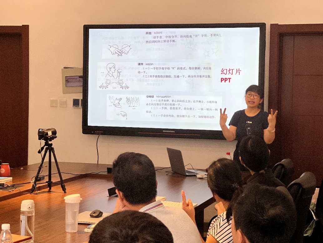 手语老师精心准备,结合教师和教辅人员的实际情况和需求提前备课,授课内容最大程度地接近日常工作和生活,帮助教师更好地为听障员工提供优质的服务。