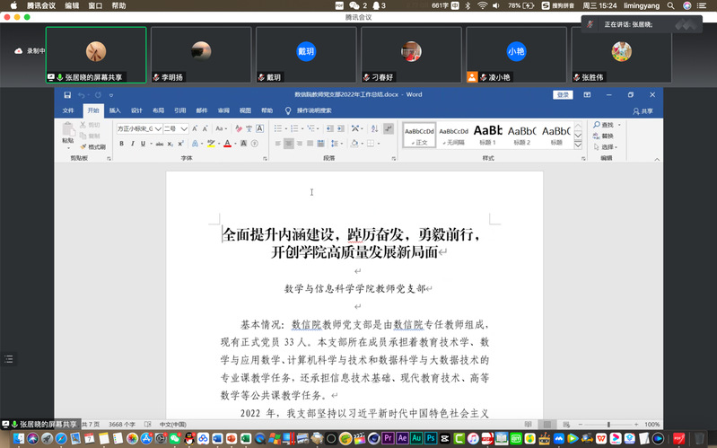 127日下午,beats365教师党支部召开全体党员大会。由于疫情影响,本次会议在线上召开。会议分为两项议程,学习最新修订的《中国共产党章程》和党支部书记张居晓年终述职汇报。