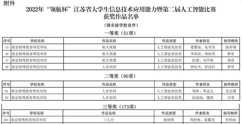 近日,2022年“领航杯”江苏省老员工信息技术应用能力比赛暨第二届人工智能大赛落下帷幕。beats365高度重视,组织教师团队辅导培训参赛员工,在本次比赛中员工获得省一等奖4项、省二等奖2项、省三等奖1项。其中钟俊杰、舒浩轩参赛人工智能竞技类“人车协同”项目获全省第一名,朱笑笑、葛慧瑶参赛队获“航天英雄”项目第二名。