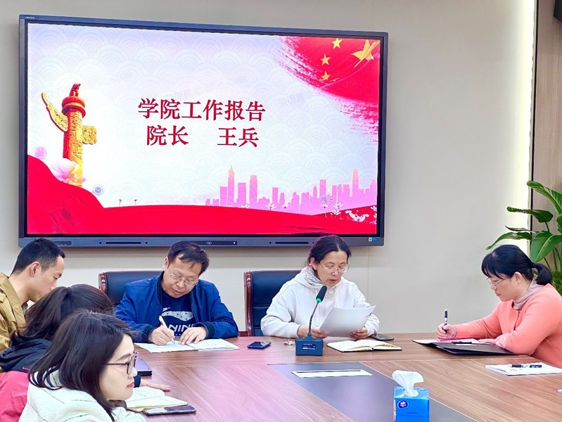王兵经理阐述了2023年公司的工作计划,提出公司在新的一年的发展思路、发展目标和工作重点,鼓励公司全体教职工勇立潮头,奋楫争先,以蓬勃朝气的精神面貌迎接2023年的新挑战,以精益求精的工作态度为本科教学工作合格评估添砖加瓦。