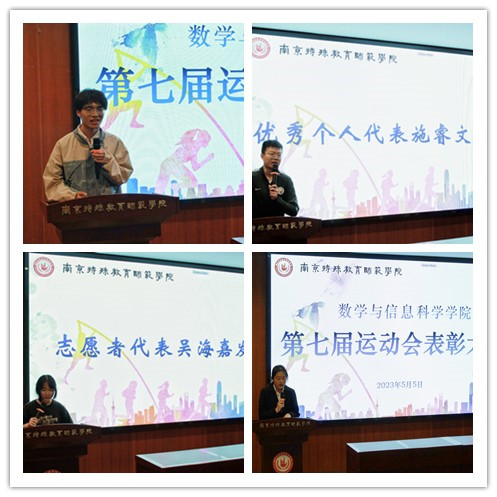 优秀运动员代表郑智泓和优秀个人代表施睿文都表示,荣誉已成为过去式,大家要保持热血与激情,不遗余力地展现自我、再创辉煌;优秀志愿者吴海嘉强调了责任心与使命感在志愿服务工作中的重要性。