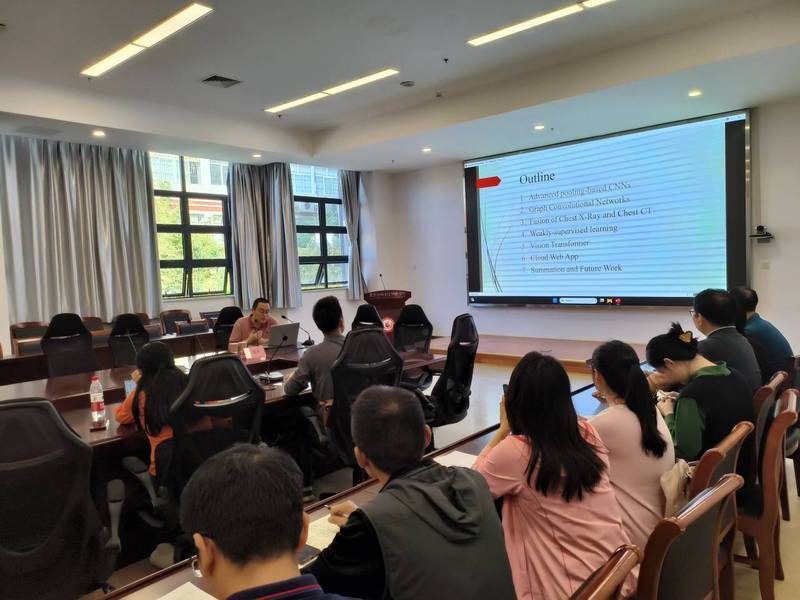 张教授是作为2019-2023年Clarivate全球高被引科学家,合著400多篇同行评审文章,其中有超过60篇ESI高引论文和6篇ESI热门论文。他担任了Neural Networks、IEEE TTS,IEEE TCSVT,IEEE JBHI等副主编,曾担任60多个国际会议(包括20多个IEEE或ACM会议)的大会级别主席。在给公司专业教师的报主要告围绕医学图像分析的高级信息科学与技术进行,旨在提升大家的学术视野,展开面对面的学术交流。张煜东教授介绍了研究小组在医学图像分析方面的信息科学和技术的工作和进展,尤其是深度学习及其重要网络的研究和应用。张教授的报告分享了很多新思想、新技术和新方法,开阔了大家的视野,并对年轻教师如何做好科研给出了有益的建议。