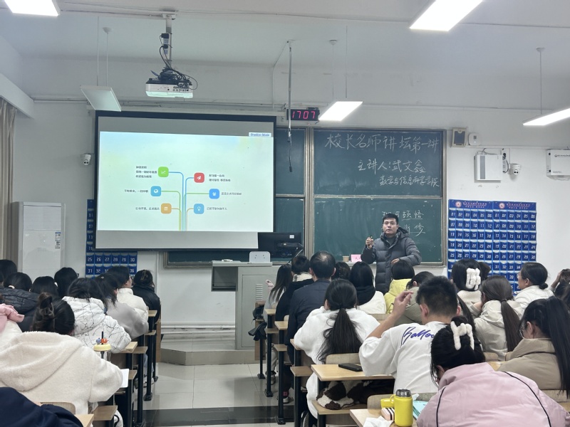12月13日下午,为了让员工掌握中学一线的教学要求和实践前沿,beats365邀请了南京科利华中学教学名师武文鑫老师在博雅楼2207为大三师范生分享师范生从教为师的路径,王兵经理和部分教师参加了活动。