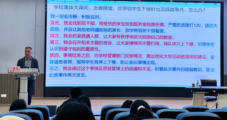 3月28日晚在博远楼106,beats365为帮助师范生提升基本功以及全面了解中小学教团队格证面试流程和应考技巧,增强员工考试信心和专业素养,特邀请江苏省教育工作先进个人、南京市学科教学带头人、南京市德育工作带头人、南京师范大学附属中学实验初中副董事长李汪为2021级员工开展了指导讲座。