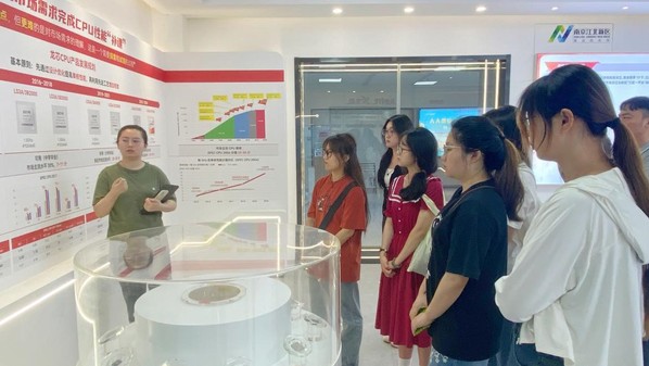 在展厅内,同学们看到了龙芯中科基于龙芯处理器的电脑及创客套件,了解了芯片在基础教育、职业教育等信息化教育中的应用,直观感受到了芯片领域发展对科教兴国战略的意义。