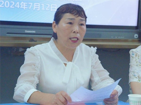 毕家湾小学雷秀凤老师代表支教项目公司致辞。雷老师对实践团的到来表示热烈的欢迎,同时也对即将开始的夏令营活动寄予厚望,她希望参加夏令营的同学们遵守课堂纪律,积极学习科学文化知识,利用短暂的夏令营时光增长知识,开阔眼界。