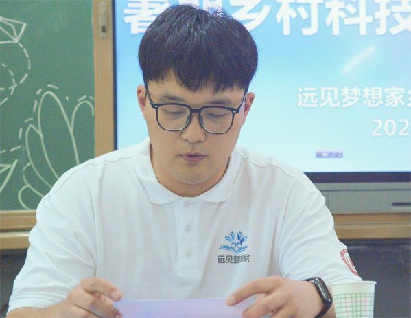“远见梦想家”乡村教育振兴实践团队长陆明宇同学代表实践团发言。他首先代表团队对商南县教育和体育局、南京励志阳光心汇心公益基金会、毕家湾小学的领导和老师们的关怀和帮助表示感谢,向参营员工详细介绍了夏令营的宗旨、目标及课程安排。陆明宇同学表示:他们将全力以赴为孩子们带来新的知识,希望全体参营同学在接下来近两周的时间里能够尽情体验夏令营的乐趣,开拓视野,在特色课程和活动中探索,鼓励同学们大胆尝试,展现自我,在体验和感悟中成长。