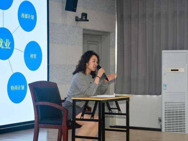 辅导员樊琬结合自己多年的员工工作经验,让同学们树立“要到哪里去”的生涯意识,把学习、生活、工作都融入到自己生涯发展的全过程。樊老师结合当下社会发展,通过自己所带员工案例,向同学们展示了未来职业生涯选择的多样性,强调生涯规划应该“应势而谋、因势而动、顺势而为”,鼓励同学们敢想敢为,脚踏实地,尽早明确自我定位。在互动环节,同学们大胆提问,热情展示,现场笑声不断。