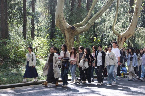 阳光明媚,微风轻拂。全体成员穿过风景如画的梧桐大道,其因遮天蔽日的绿意和悠久的历史而闻名,它们见证着南京的历史变迁,成为了南京的一张亮眼名片。在欢声笑语中,团队漫步于梧桐秋色中,为这秋天注入了一丝鲜活的气息和光彩。