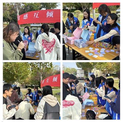 在 “情感互倾诉,乐享解千愁”心理主题活动现场,“小信鸽”心灵驿站的志愿者们准备了“坏情绪”和“小确幸”两种盒子,为同学们提供了一个倾诉心声、分享快乐的平台。同学们纷纷将自己的烦恼、压力等负面情绪写在纸条上,投进“坏情绪”盒子,这意味着他们放下了心中的“包袱”,给情绪一个安全的释放空间。同时,同学们也将自己的快乐经历写在纸条上,投进“小确幸”盒子,这些快乐的纸条将被有烦恼的同学带走,实现了愉快的传递和共享。