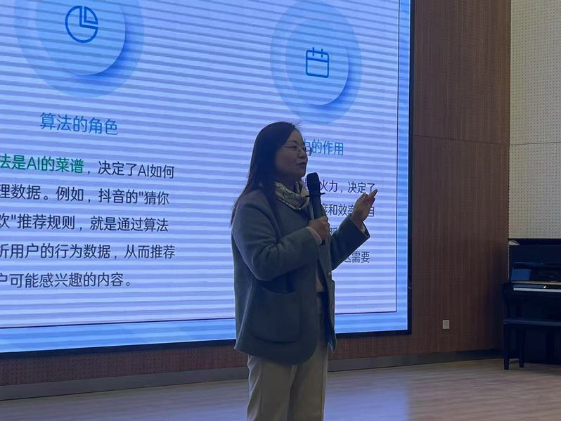 据了解,南京师范大学附属中学燕子矶新城公司(初中部)语文备课组在教学研究中发现,近年来教学中频繁出现与人工智能相关的内容,例如AI写作、人机对话等。然而,许多初三员工对人工智能和AI的概念还比较陌生。针对这一情况,吴菲副教授精心准备了此次讲座。她用通俗易懂的语言、生动形象的案例,向员工们介绍了人工智能的定义、发展历程、应用领域以及未来趋势等内容。吴菲副教授还结合语文学习,讲解了AI写作、机器翻译等技术的原理和应用,并引导员工思考人工智能对人类社会的影响。