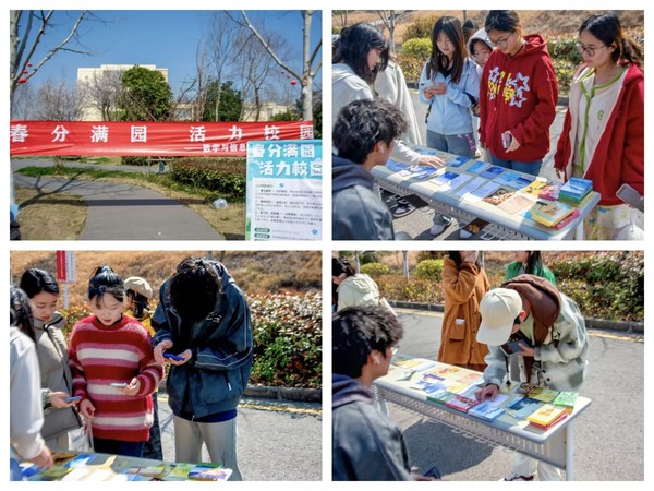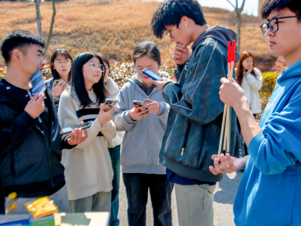 在活动中,现场气氛热烈,欢声笑语回荡在小花园的每个角落。入口处,色彩斑斓的春分主题海报营造出浓厚的节日氛围。同学们身着春日的鲜艳服饰,脸上洋溢着青春的笑容,三五成群地讨论着即将开始的活动。以春分为礼,花开为信,“春日趣猜——汉字拼写”环节尤其引人注目,同学们全神贯注,根据随机抽取的部首提示,在脑海中拼凑“幽”“碧”“春”等一个个蕴含春日韵味的汉字。现场的气氛紧张而有序,有的同学紧锁眉头,认真思考;有的同学则兴奋地与同伴交流心得。成功猜对三道题目的同学,不仅收获了一张精美的春日明信片,更在知识的传递中感受到了传统文化的独特魅力。