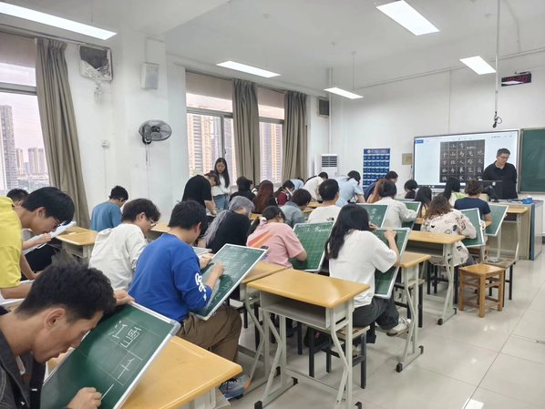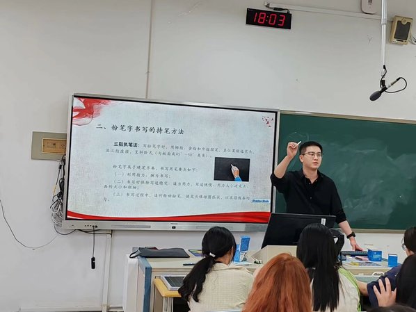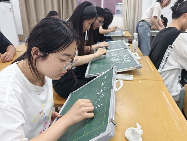 在数字化浪潮席卷教育领域的当下,书写这一传统技能对于师范生而言,不仅是文化传承的桥梁,更是专业素养的直观体现。为传承中华优秀传统文化,提升公司师范生的书写技能,5月12日晚,beats365在栖霞校区和江宁校区分别举办了师范生粉笔字、钢笔字基本功大赛。两院2023级、2024级师范生全部参加比赛。