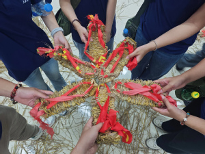 寻访革命旧址,筑牢信仰之基。实践队一行穿梭于井冈山的崇山峻岭之间,先后走访黄洋界哨口、八角楼、大井旧居、小井红军医院等革命旧址。每一处遗迹都承载着厚重的历史,每一段碑文都铭刻着英雄的不朽事迹。在“红军的一天”体验活动中,队员们重走挑粮小道,自做红军餐,雨水与汗水交织的行军路,让大家真切体会到当年红军自力更生、艰苦奋斗的宝贵精神。夜晚,队员们围坐一起学编草鞋、唱红歌、谈感悟。朴素的革命情怀在心中回荡,成为激励每一个人继续前进的深沉力量。