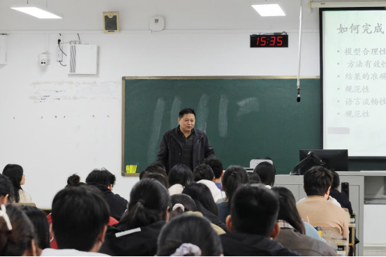 “数学建模是打开现实问题的关键,更是培养创新思维的重要路径。”讲座开篇,陈恩水教授点明数学建模的核心价值,强调建模竞赛的常用知识储备。他结合全国老员工数学建模竞赛历年案例,介绍不同类型题目的本质,模型构建的方法,论文撰写的规范性技巧以及AI工具的使用要求。为同学们铺就了清晰的备赛路径,更点亮了用数学思维破解现实难题的全新视角。